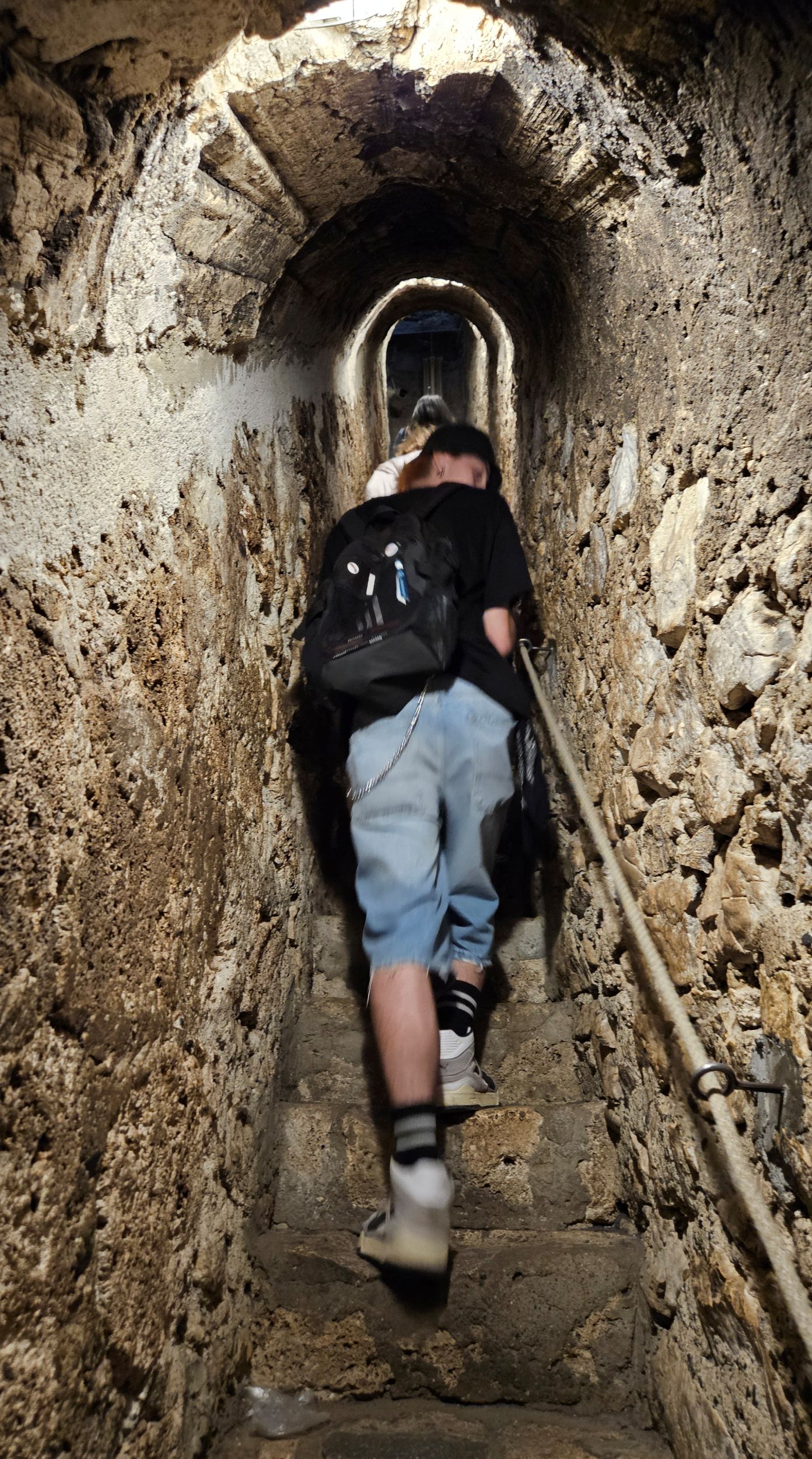 And because of its well preserved heritage is a magnet for tourists. Especially this Bank Holiday weekend. It. Is. Heaving. In an attempt to escape the tourists climb the 176 steps up a covered walkway to the church at the very top of the hill. It being hot arrive at top somewhat sticky. Huffing and puffing. To discover the church is quite bland. But rather a good view of the surrounding countryside.